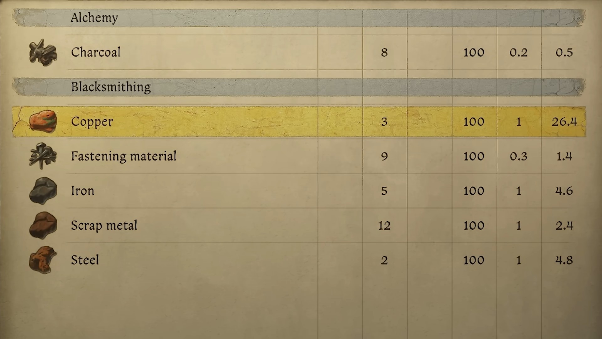 Ogni ricetta richiede materiali per iniziare a creare. Questi materiali possono essere rottami metallici, acciaio, materiale di fissaggio, ferro o altri oggetti unici. Il modo consigliato per ottenere i materiali è acquistarli da fabbri, artigiani o negozi, ma nota che a volte puoi anche ottenerli dal razziare forti e persino nidi di uccelli.