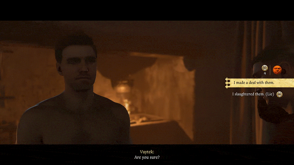 Una volta che hai spuntato tutti i passaggi precedenti, torna a Troskowitz e parla con Vuytek. Puoi dirgli che hai avuto un accordo con i cumani e perdere la tua reputazione con lui o mentire sul massacrarli e guadagnare 25 Groschens da lui.