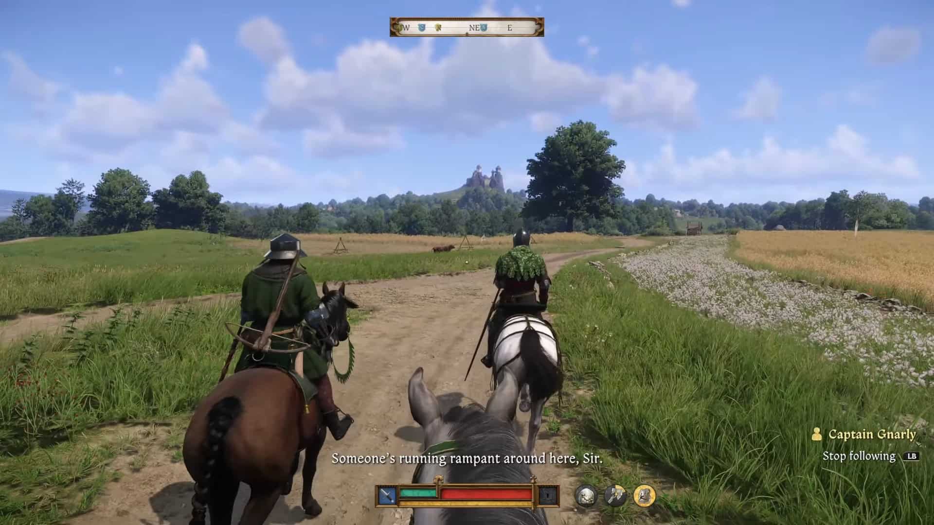 Segui gnarly al cortile, dove incontrerai Lord Semine. Prima di parlargli, assicurati di avere un cavallo. Se non lo fai, devi visitare le scuderie e ottenere ciottoli.