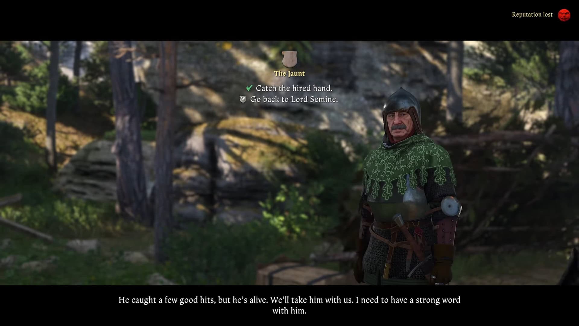 Nota che questa ricerca è sensibile al tempo, quindi devi prepararti a partire con Lord Semine e il Capitano Gnarly immediatamente una volta raggiunta la Semine. Dopo aver completato la ricerca in Kingdom Come Deliverance 2guadagnerai 80 Groschen e a Foglio arrugginito.