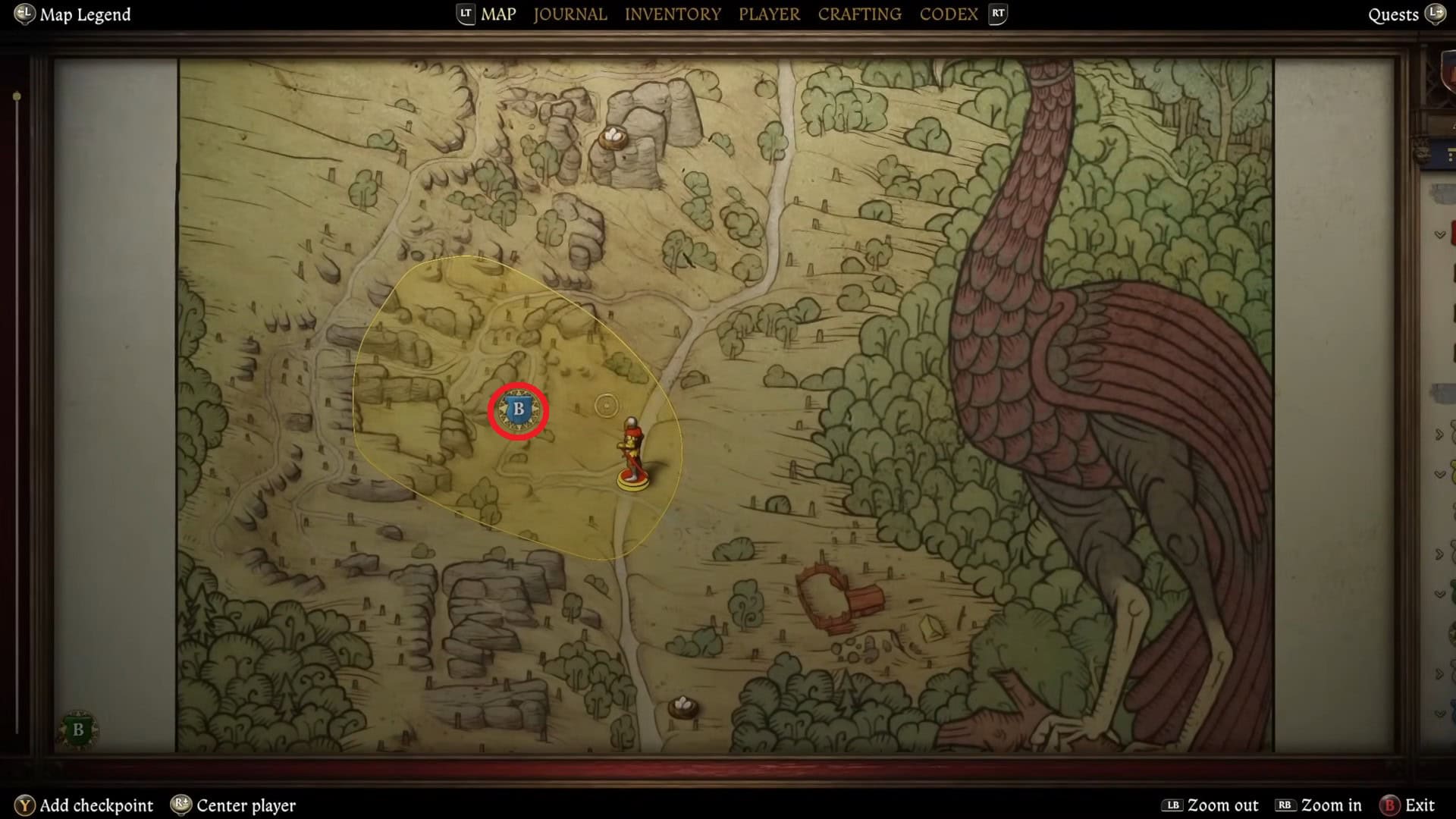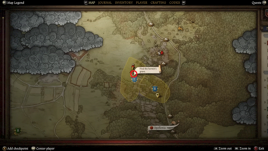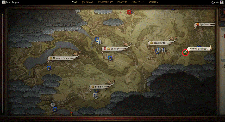 Dopo aver letto il diario, la mappa si aggiornerà con un nuovo indicatore per una tomba sul lato ovest del marcatore precedente. La tomba sarà sotto l’albero a doppia ciocca. La spada sarà posta sulla sua tomba; Basta raccoglierlo e riportalo al fabbro.