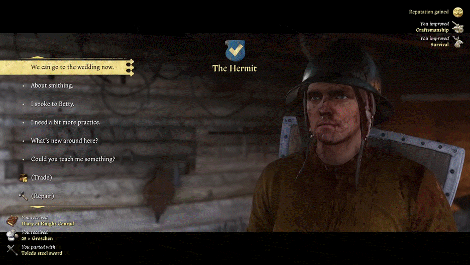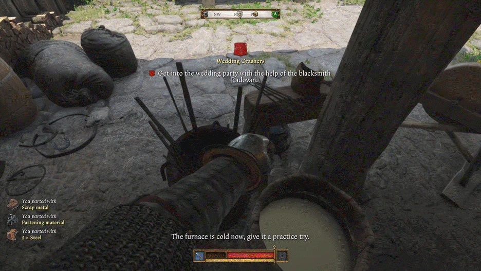 Il fabbro ti darà i materiali per forgiare la spada. Una volta terminata la spada, puoi chiedere a Radovan di portarti al matrimonio.