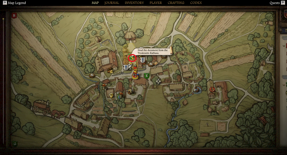 L’obiettivo principale di questa ricerca è recuperare un documento. Inizialmente, Miller ti chiederà di trasportare sacchi di farina in cambio di un Groschen. Ma dopo aver aiutato con alcuni sacchi, parla di nuovo con Kreyzl e offriti di aiutarlo. Kreyzl ti chiederà di visitare Rathaus a Troskowitz, accanto a una taverna, e di recuperare un documento dal petto lì. Tuttavia, in primo luogo, devi rubare i vestiti di Kreyzl dallo stabilimento balneare.