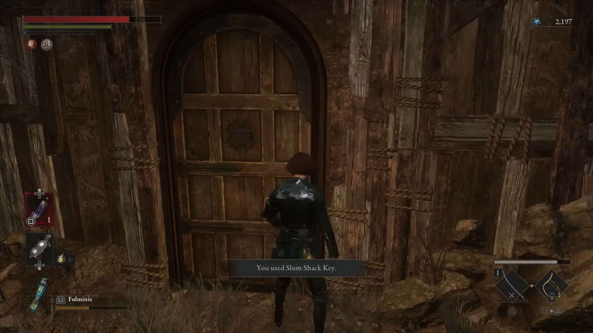 Usa di nuovo l’ascensore per scendere, ma questa volta salta a metà per ottenerlo Pietra di Luna della Luna Oscura. Scendi due volte per raggiungere il centro dei bassifondi. C’è un combattimento con un mini-boss in quest’area con una carcassa armata di un’ascia seghettata. Questa lotta è infernale e ha bisogno che tu sia sempre all’erta. Non consigliamo di saltare questo combattimento poiché condurrà a un tesoro unico. Questo mini boss cade Chiave della baracca dei bassifondi. Usa questa chiave su una porta nella stessa area.