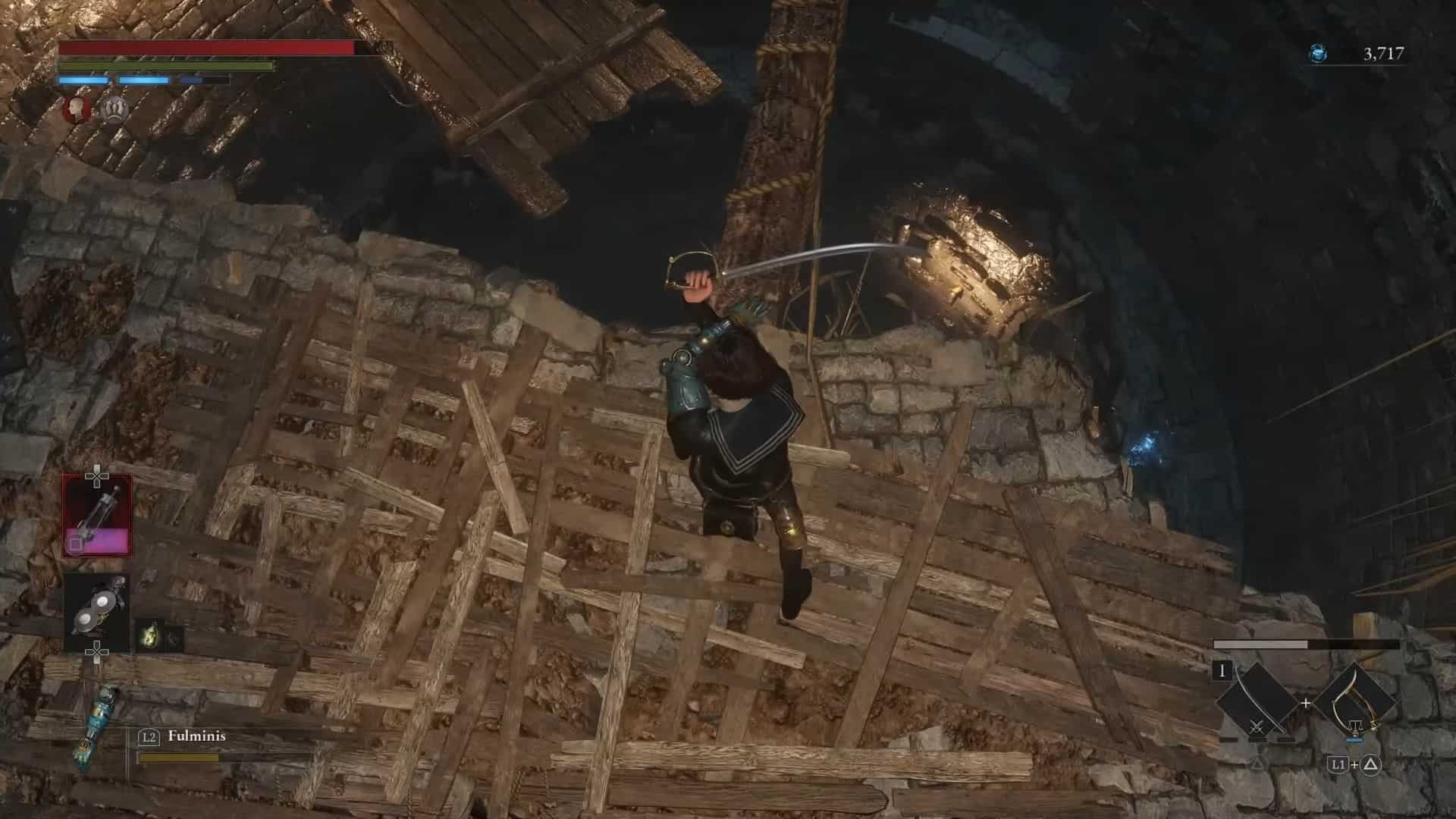 Ritorna al percorso principale e ripara il Sentiero del Pellegrino Stargazer in Lies of P. Continua il tuo viaggio e sconfiggi i nemici per ottenere la Pietra di Luna Nascosta (materiale per potenziare le armi fino a +3). Successivamente, vai su una piccola scogliera con un tamburo di fuoco e ottieni Frammento Ergo Dim. Anche qui ci sono 2 nemici non morti.
