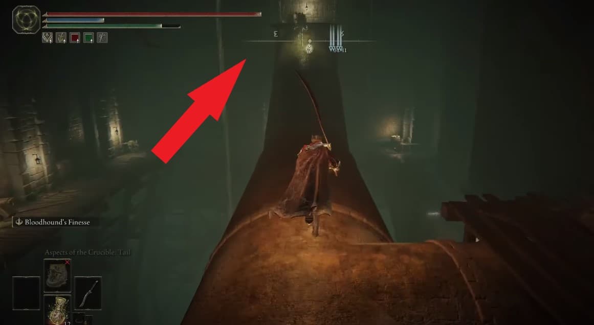 Partendo dal sito sotterraneo della grazia, svolta a sinistra e prosegui fino alla fine verso i due presagi. Combattili o ignorali. Ad ogni modo, puoi saltare giù da un’apertura qui nei tunnel inferiori. Segui il tunnel e troverai un tunnel circolare alla tua destra. Entra.