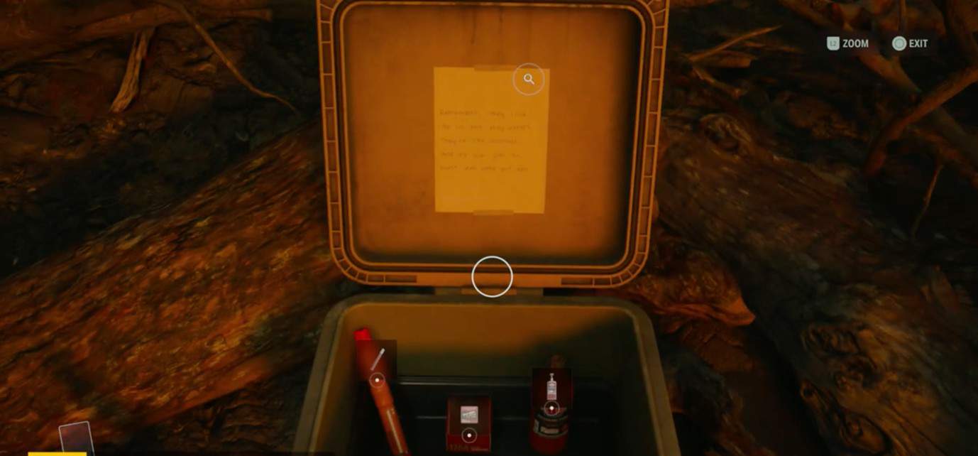 Apri la recinzione ed entra nel capannone per trovare una scorta di culto. La scorta del culto può essere aperta tramite un puzzle che fa riferimento al livello del mare in Alan Wake 2. Per tua comodità, il codice per la scorta è 6-9-7. Apri la scorta e sblocca la terza riga barrata nel tuo inventario.