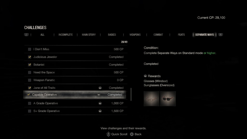 Separate Ways ha anche una manciata di oggetti di equipaggiamento da sbloccare.
