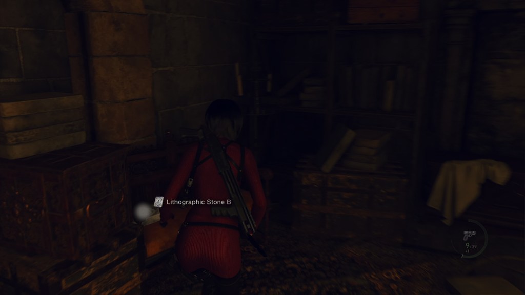 Per risolvere il puzzle della litografia nel DLC RE4 Separate Ways, devi prima trovare due delle litografie stesse. La litografia A si trova sul percorso critico, ma può essere facile trascurarla. Per prima cosa, solleva la libreria inclinata dal percorso principale. Ignorate per ora l’altro percorso e proseguite dritto. Questo ti condurrà al negozio del commerciante. La litografia A è proprio sul lato opposto della stanza rispetto al mercante, su un tavolo con sopra un mucchio di libri e carta, oltre a una candela.