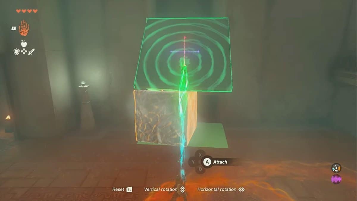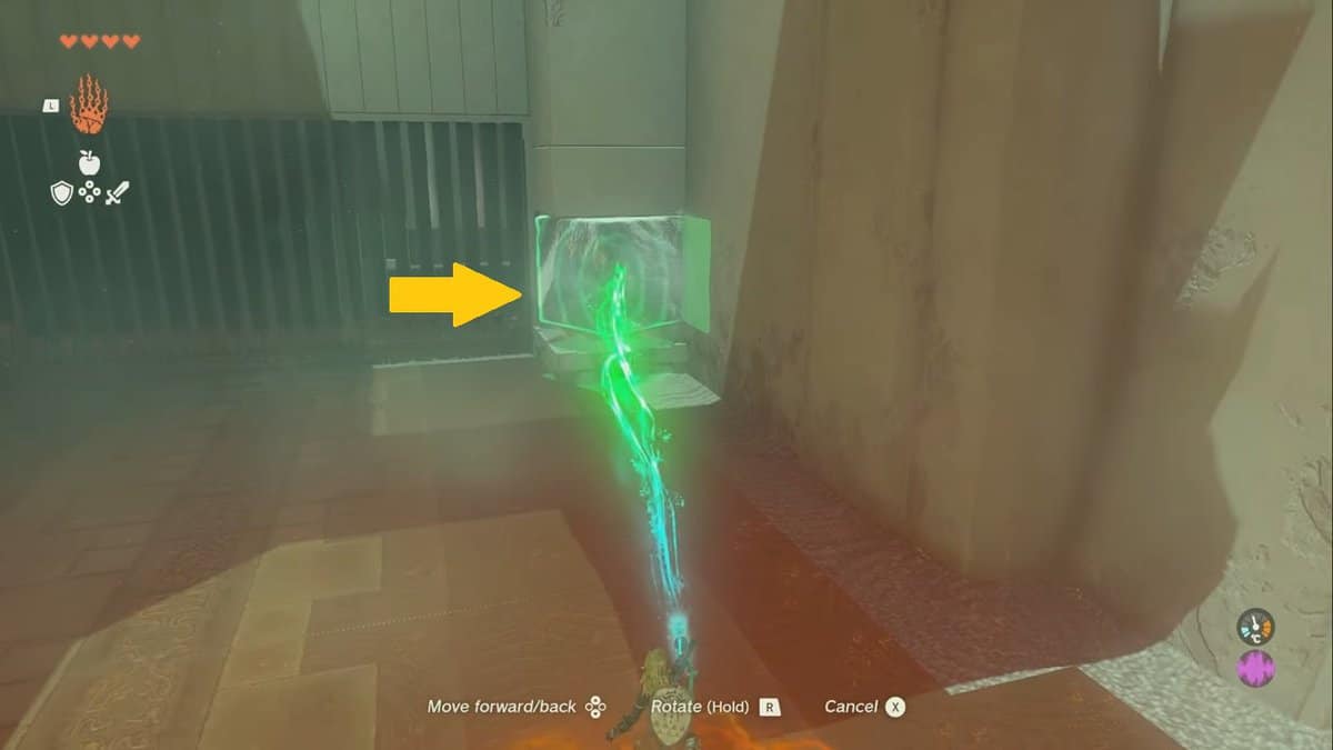 Usa la tua abilità Ultrahand per avvicinare i cubetti di ghiaccio al fuoco per renderli più piccoli.