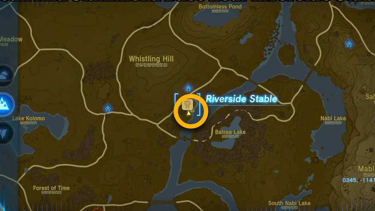Devi viaggiare da una parte all’altra della mappa. Sfrutta la capacità di viaggio veloce per raggiungere la posizione desiderata. Quindi apri la tua mappa e viaggia velocemente verso la Riverside Stable che si trova nel lato sud-est della regione di Hyrule Field di Whistling Hill.