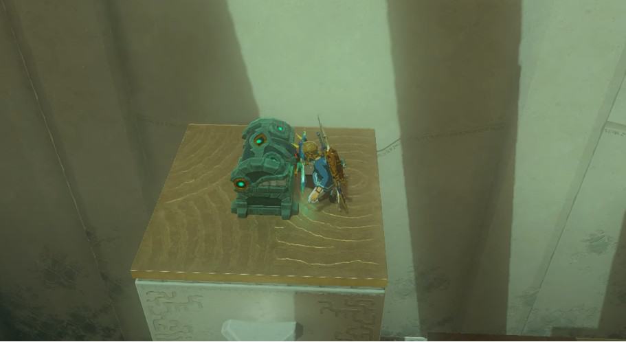 Quando raggiungi la piattaforma superiore, salta in cima al ventilatore a destra e fatti strada fino alla cima del pilastro a sinistra. Saccheggia il forziere del Santuario di Tsutsu-um e ottieni 5 Frecce.
