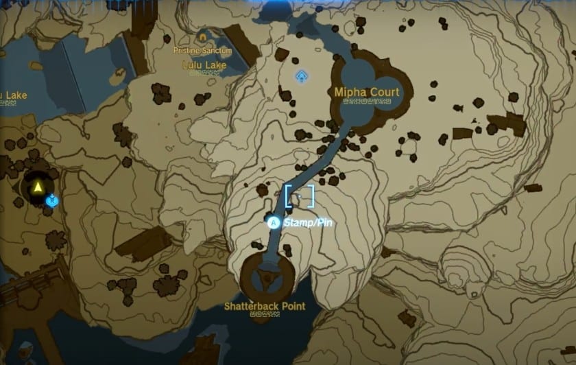 Puoi visitare le coordinate 3321, 0486, 0139 e raggiungi la posizione contrassegnata sulla mappa di Zelda qui sotto per trovare Cleff all’emporio: